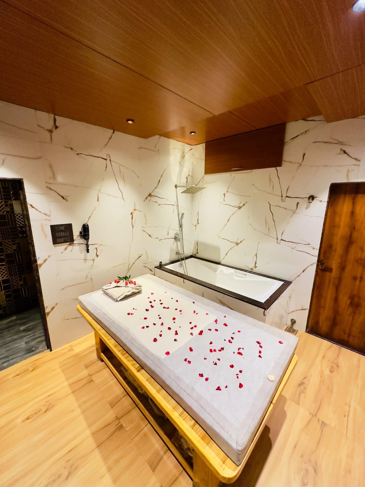 Enjoy the soothing benefits of our Jacuzzi Body Massage at Sutra Spa Thane. Warm water jets ease muscle tension, improve circulation, and provide deep relaxation for the body and mind. A luxurious wellness experience you’ll love.